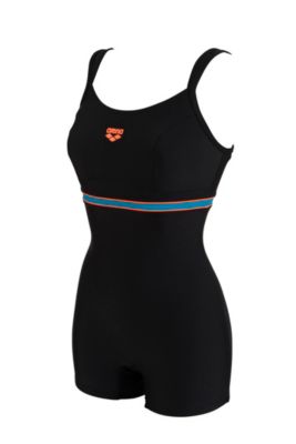 Klorresistent badedrakt med ben og klassisk silhuettformet modell. Avrundet hals og lavkutt ben. Klor resistent badetøy med ekstra lange ben fra suge. Fôret bust og forsterket med ekstra støtte. Høy i ryggen og solide stropper.